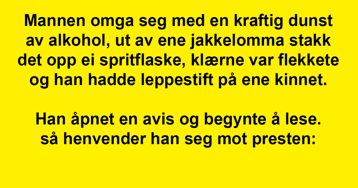 Han åpnet en avis og begynte å lese. Etter en stund henvender han seg mot presten: